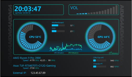 Core テンプレートは、シンプルで機能的なデザインを採用し、CPU と GPU の温度、ファン速度、システム稼働時間などの重要な指標を表示します。これは優れた出発点であり、カスタマイズのための十分な余地があります。