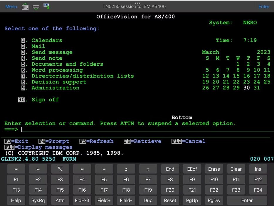 ·Glink 5250 : Glink 5250は、IBM iSeriesシステム上で実行されているアプリケーションにアクセスするために使用されます。Glink 5250はすべてのIBM 5250ターミナルをエミュレートし、ホストシステムとの通信にはTN5250プロトコルを使用します。TN5250拡張表示自動サインオン機能に対応しています。