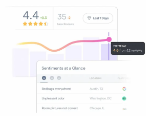 顧客の洞察を発見し、売上を向上させ、最高のオンライン存在感を構築しましょう。当社のレピュテーション管理プラットフォームを活用すれば、ついにレビューに埋もれる悩みから解放されます!